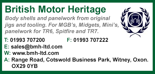 Body shells and panelwork from original jigs and tooling. For MGB’s, Midgets, Mini’s, panelwork for TR6, Spitfire and TR7.